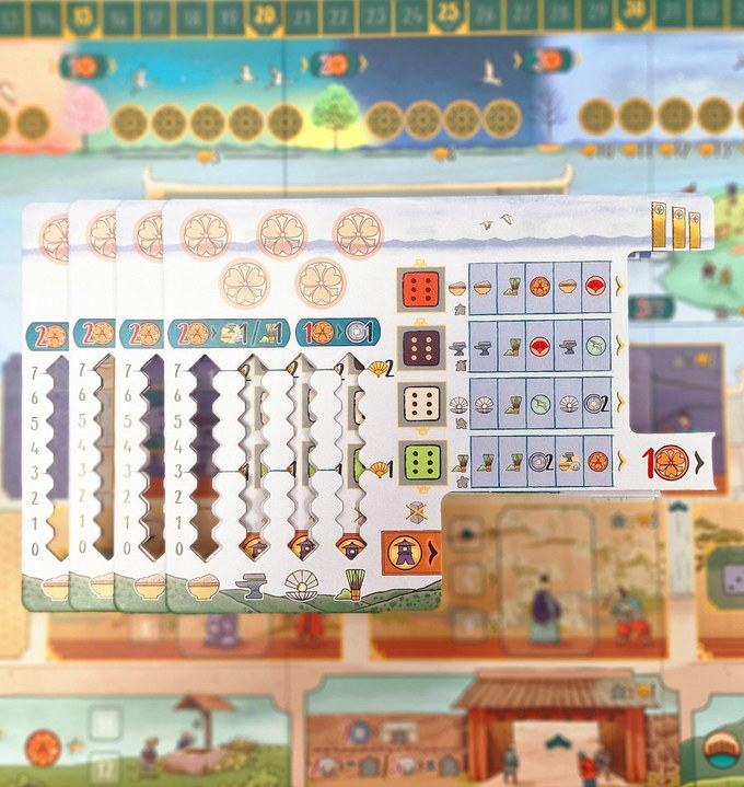 In The White Castle: Matcha, you will have to deal with a new place in which to influence the court using new members of your clan. Having members of your clan in good seats within the Chashitsu (tea room) will help you achieve a greater level of influence within the court of Himeji. Also, you will have one additional action each round. Will that be enough?