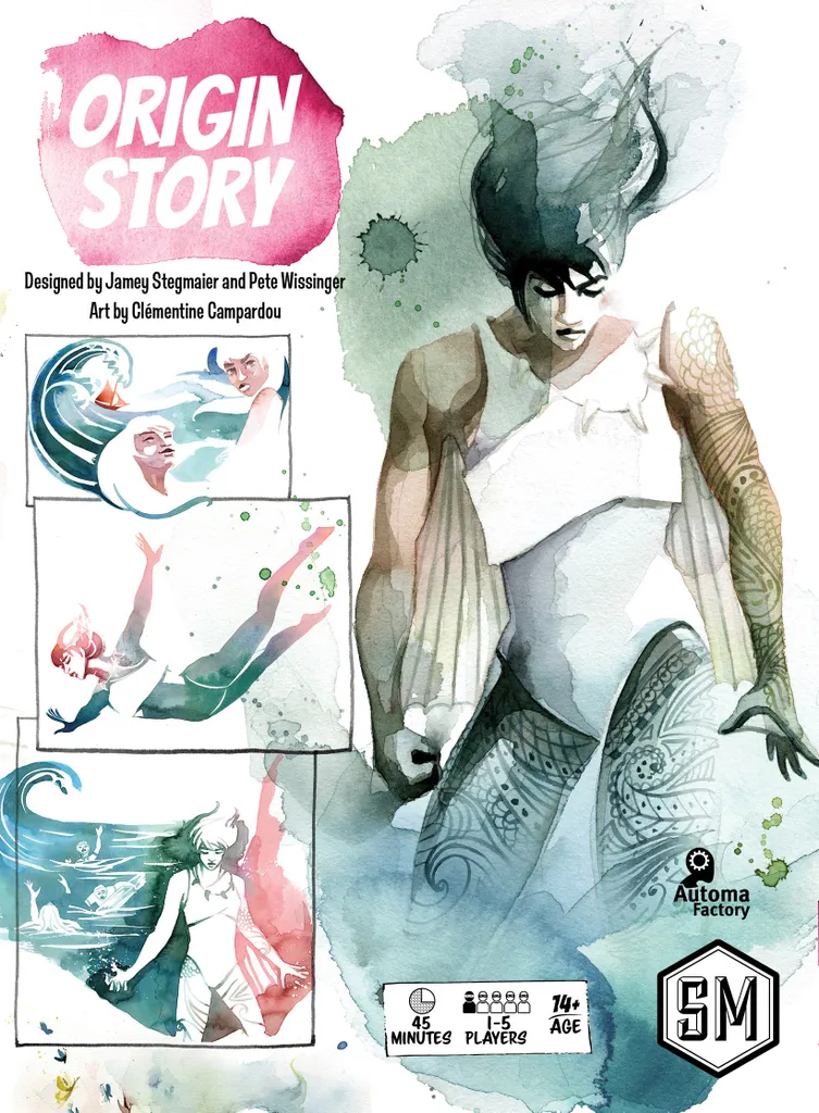 Origin Story is a 1-5 player competitive tableau-building, trick-taking game played over 5 rounds. Each round represents a chapter in your development and grants a new card to add to your player mat. Charge your cards and use their abilities to score more points than your opponents.
