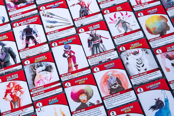 Origin Story is a 1-5 player competitive tableau-building, trick-taking game played over 5 rounds. Each round represents a chapter in your development and grants a new card to add to your player mat. Charge your cards and use their abilities to score more points than your opponents.