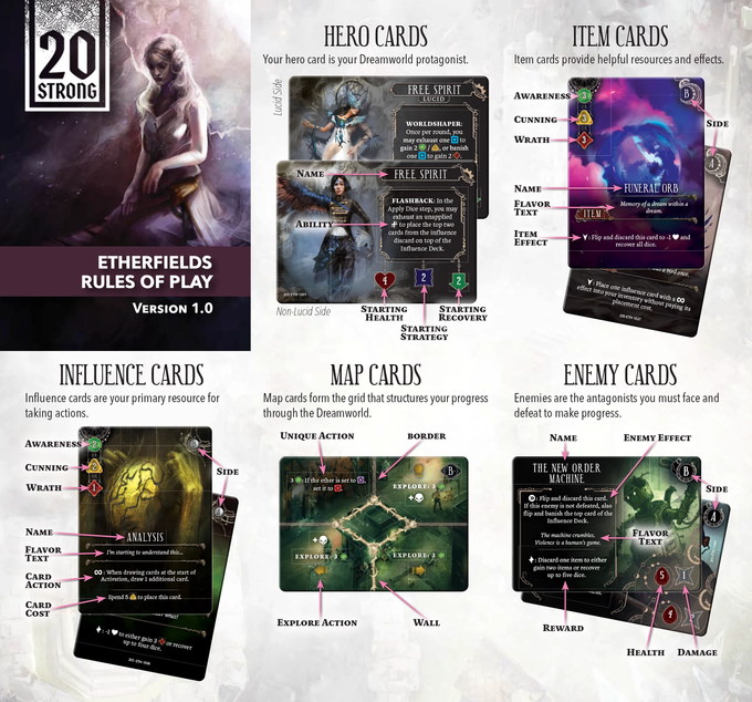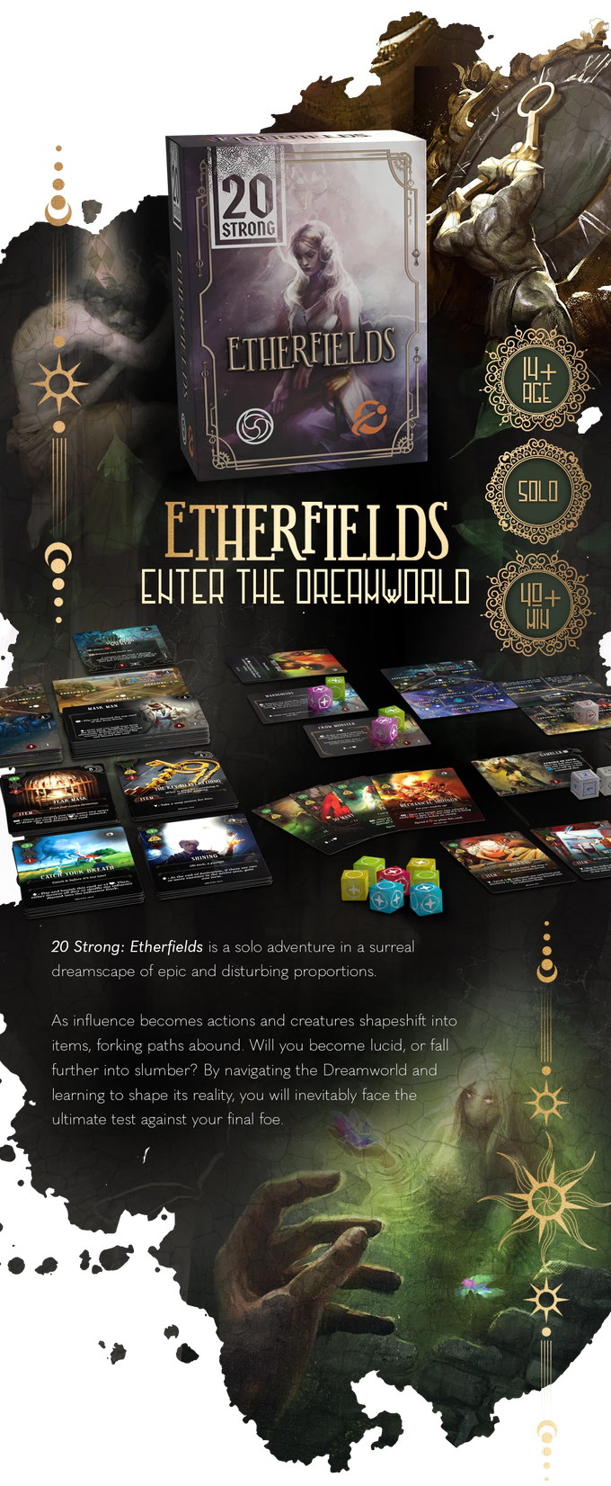 Expand your awareness, deploy your cunning, and unleash your wrath. Influence cards shape what’s possible in the dream. Spending these resources will augment your pool of dice and keep you moving through the dream. Players are free to use actions whenever they wish, leading to some of the most creative play in the 20 Strong universe. Work over time to uncover the deck’s secrets, finding and defeating every hidden boss Etherfields has to offer.wn objectives. Their choices might even require you not to make it off the ship alive. Focus on your survival and make sure you’re in one of those escape pods!
