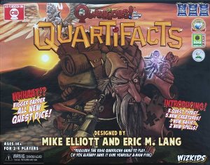 Quest cards are available in the Wilds for you to send your Creatures to capture the all-new LARGER Quest dice that wield unimaginable power. (No, seriously, we have no idea what these things do.) Quarriors! Quartifacts includes five new Creatures and two new Spells, in addition to a new Basic card (the Squire), twelve Quest cards, and six Quest dice.