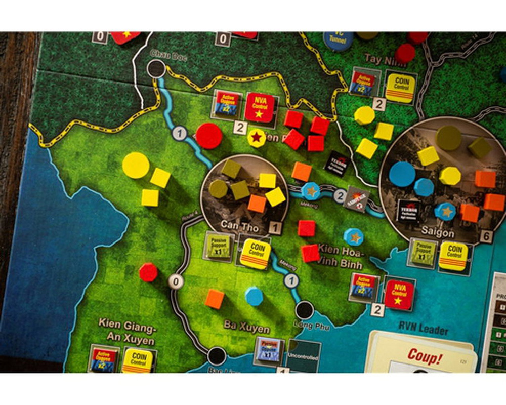 Volume IV in GMT’s COIN Series dives headlong into the momentous and complex battle for South Vietnam. A unique multi-faction treatment of the Vietnam War, Fire in the Lake will take 1 to 4 players on US heliborne sweeps of the jungle and Communist infiltration of the South, and into inter-allied conferences, Saigon politics, interdiction of the Ho Chi Minh Trail, air defense of Northern infrastructure, graduated escalation, and media war.