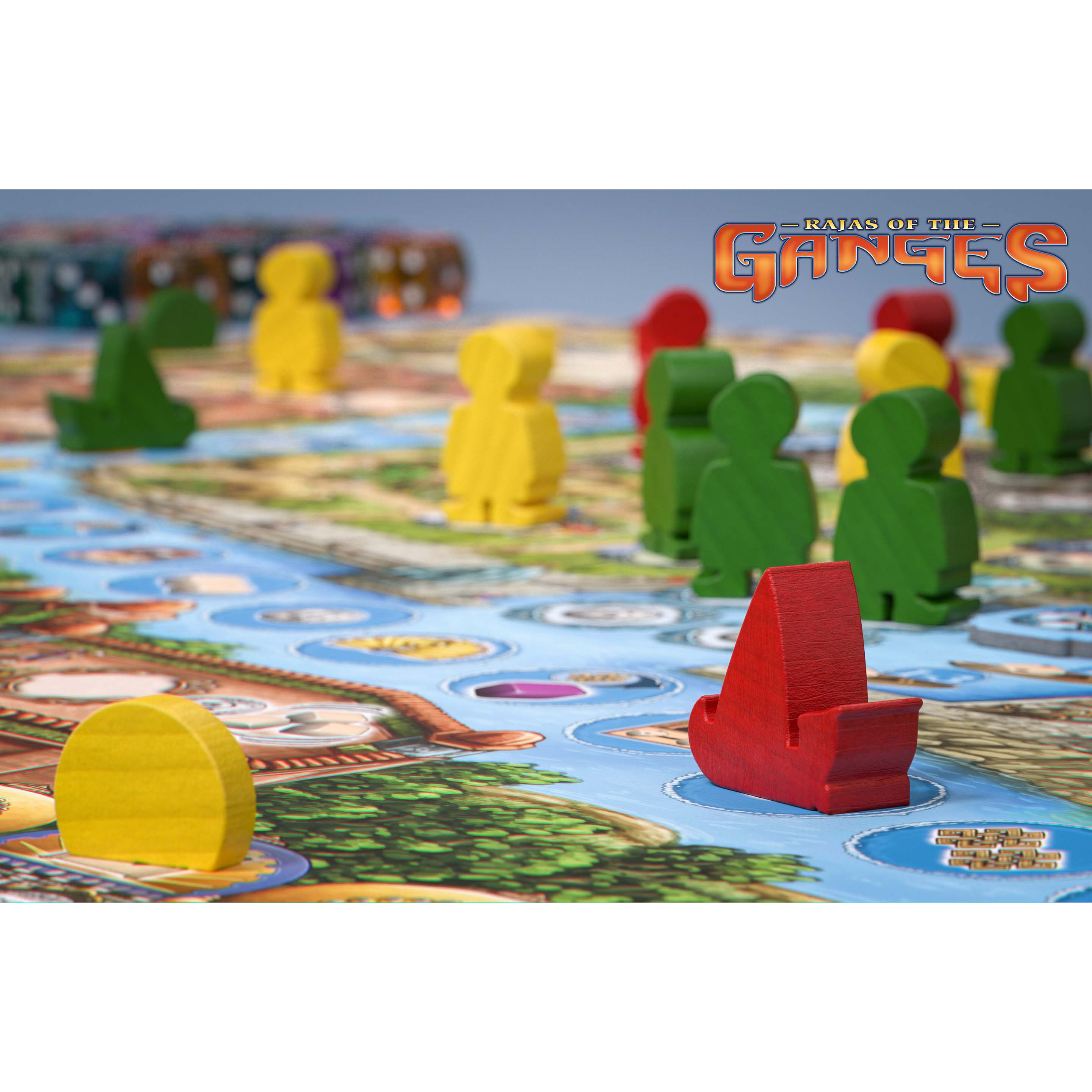 Through tactics and karma to wealth and fame... In 16th century India, the powerful empire of the Great Moguls rises between the Indus and the Ganges rivers. Taking on the role of rajas and ranis – the country's influential nobles – players in Rajas of the Ganges race against each other in support of the empire by developing their estates into wealthy and magnificent provinces. Players must use their dice wisely and carefully plot where to place their workers, while never underestimating the benefits of good karma. Success will bring them great riches and fame in their quest to become legendary rulers.