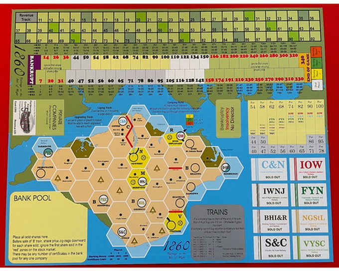 A game tracing the development of railways on the Isle of Wight, 1860 is part of the 18xx series of economic railway games, based on Francis Tresham's original concepts.