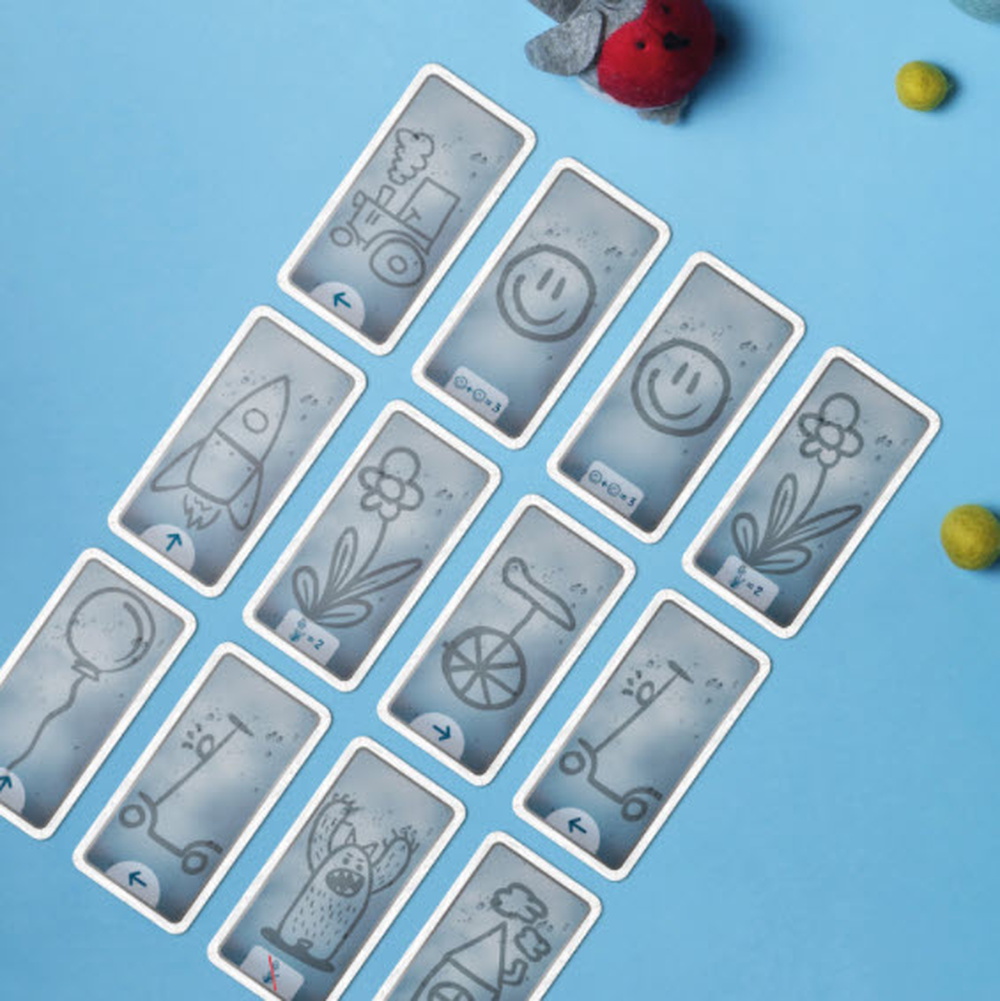 After 12 turns, each player has a magnificent window filled with drawings that will come to life in front of them: the balloons float up, the vehicles drive out and the leaves fall down. Only some of the drawings can earn you points. The most beautiful and valuable drawing is the flower, but watch out for the monster who keeps on trying to eat it.