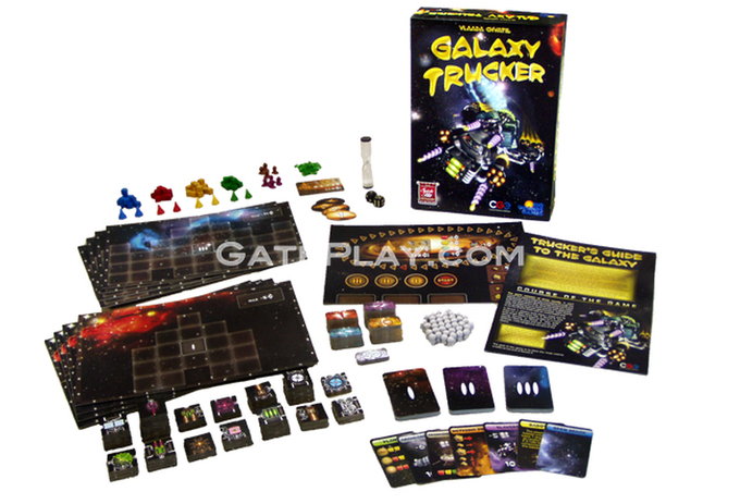 Galaxy Trucker is a tile laying game that plays out over two phases: building and flying. The goal is to have the most credits at the end of the game. You can earn credits by delivering goods, defeating pirates, building an efficient ship, and being the furthest along the track at the end of the flying phase.