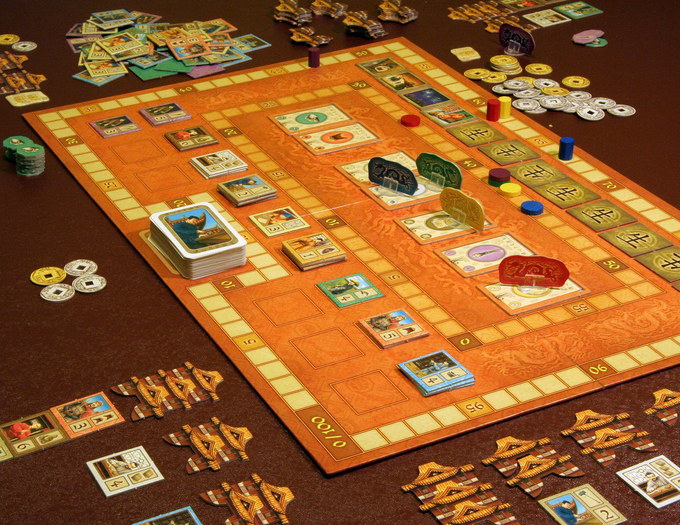 Players take on the role of Chinese rulers around the year 1000. The game plays out in twelve rounds, with each round representing one month in a year that seems to go from bad to worse. Disease, drought, and attacks from the Mongols may claim lives, but make sure you have enough money to offer a tribute to the Emperor.