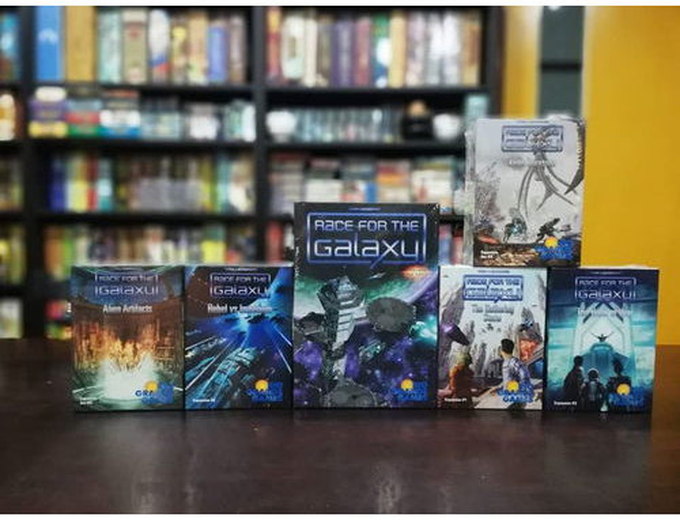 In the card game Race for the Galaxy, players build galactic civilizations by playing game cards in front of them that represent worlds or technical and social developments. Some worlds allow players to produce goods, which can be consumed later to gain either card draws or victory points when the appropriate technologies are available to them. These are mainly provided by the developments and worlds that are not able to produce, but the fancier production worlds also give these bonuses.