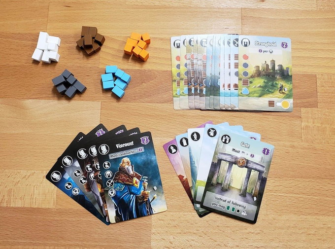 In Villages of Valeria: Landmarks, players will be able to discard cards with specific resources in order to take and build Landmark tokens on their Castle card. At the end of the game, the player with the most of each token will gain bonus points. You can also earn bonus points by collecting sets of all 5 Landmark token types. Will you leverage the new Landmarks to be declared the next capital of Valeria?