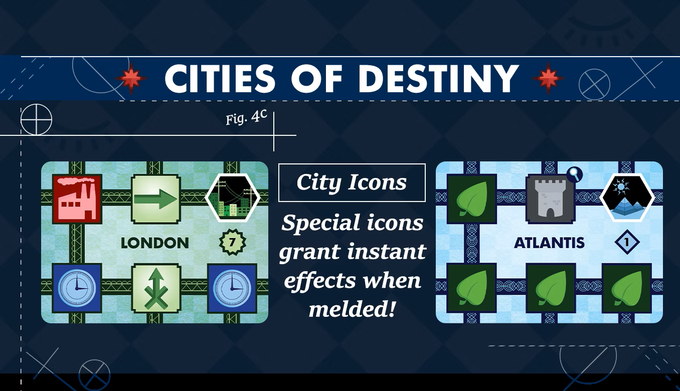 Cities of Destiny allows you to add cities from around the globe to your game. Cities don't have effects, instead they have extra icon slots, some of which are filled with special icons that grant instant actions. Splay a pile, jump ahead in the ages - some are even worth achievements while visible!