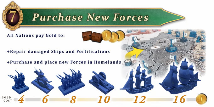 Each Nation purchases and deploys new Forces with Gold from its Treasury.