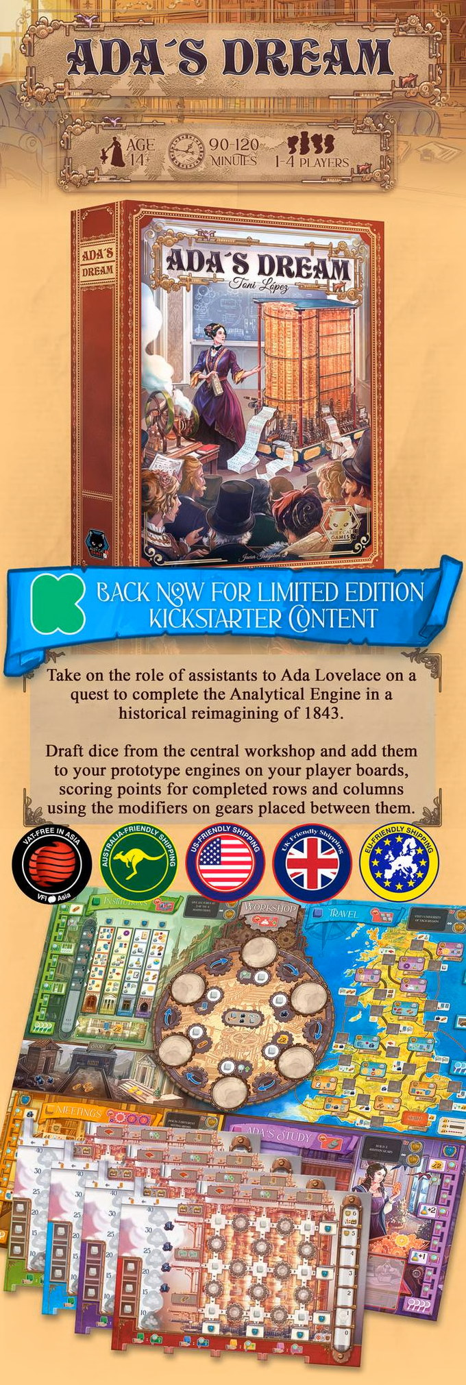 In Ada's Dream, work with Ada Lovelace to help build the first computer, fulfilling her dream in this alternate history Euro Game.
