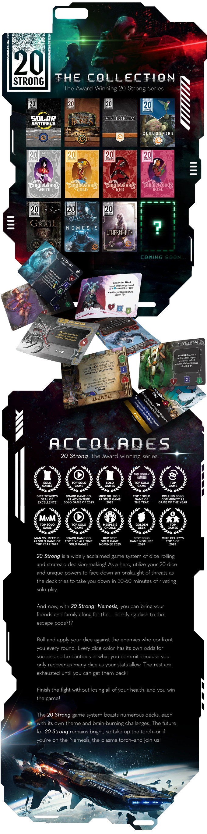 While every other 20 Strong deck is solo-only, 20 Strong: Nemesis changes the game and offers the only cooperative play experience in the entire series.