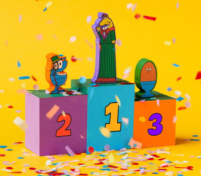 Magical Athlete is a racing game of pure chaos! Roll a die and move your racer that many spaces — but all the racers have wacky, game-breaking abilities. Race four times, then whoever has the most points wins!